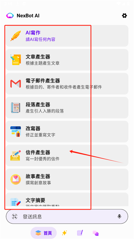 NexBot AI安卓手机版是一款人工智能写作平台,它专为需要进行内容创作的用户打造,提供了丰富的功能和工具,以满足用户的不同需求,用户只需输入主题或关键词,NexBot即可按照要求自动生成文章段落或整篇文章,提供了多种写作模板,用户可以根据需要选择合适的模板进行创作,支持用户自定义关键字和短语,以生成更加个性化的内容!
